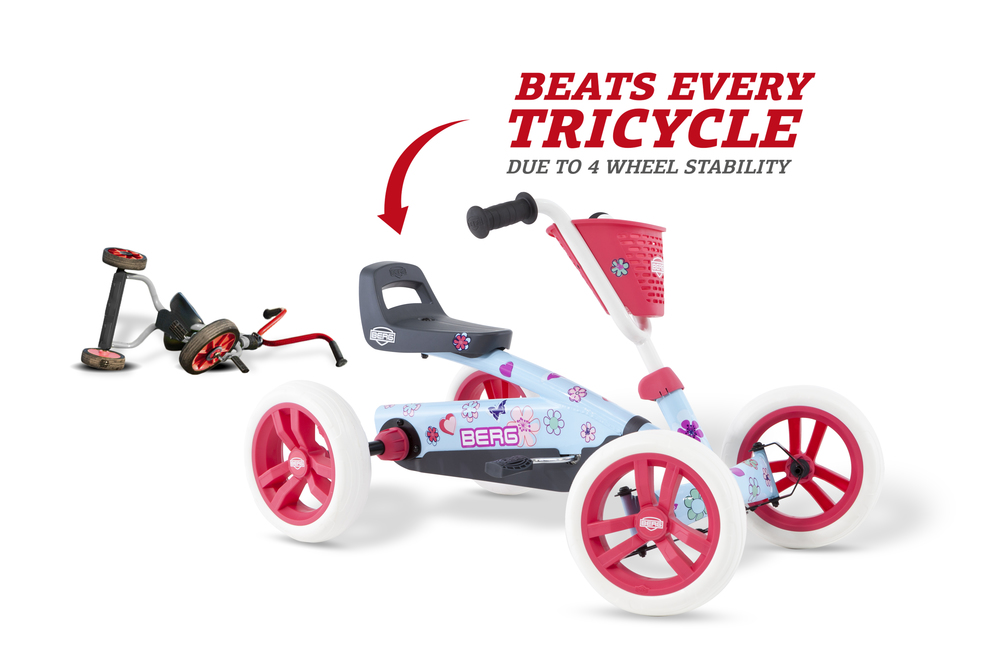 Leren trappen was nog nooit zo makkelijk! Met de BERG Buzzy doe je de eerste trapervaring op. En door het verstelbare stuur en zadel groeit de BERG Buzzy met je mee. Erg stabiel en veilig door de vier EVA banden die nooit lek gaan. Wil je meteen met deze bolide wegrijden? Trappen en rijden maar!